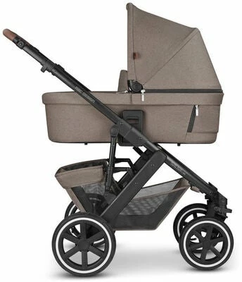 Smidig Salsa 4 Air duovogn fra ABC Design med et justerbart håndtak. Den har justerbar ryggstøtte og et vendbart sete. Duovognen har punkteringssikre lufthjul og en vannresistent kalesje for optimal beskyttelse mot regn og vind. – Når den ikke er i bruk, eller ved transport, kan den enkelt slås sammen til en kompakt transportposisjon. – Maksimal vekt: 22.0 kg. – Svinghjul med en lås. – Anbefalt alder: fra nyfødt til 4 år. – Inkluderer: .Vi på Jollyroom vet hvor vanskelig det kan være å finne en barnevogn som passer akkurat deg og ditt barns behov, og at det iblant blir veldig mye å tenke på med ulike modeller, merker og funksjoner. For å gjøre jobben lettere for deg henviser vi til vår enkle barnevognguide: Jollyrooms Barnevognsguide