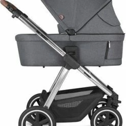 Samba, en praktisk duovogn fra ABC Design. Samba er klar til bruk helt fra fødselen, takket være den komfortable liggedelen med medfølgende madrass. Barnevognen kan brukes til barn opp til ca. 22 kg, bare bytt ut liggedelen til den medfølgende sittedelen ved å klikke den inn i rammen. Kjøp også til en babybilstol, for et komplett Travel System.Sittedelen har et fempunktsbelte og en justerbar rygg- og fotstøtte, alt for å gjøre trilleturen så behagelig og trygg som mulig for barnet. Rammen har en fotbrems og et justerbart håndtak, for å gjøre trilleturen like behagelig for føreren. Kalesjen er utstyrt med solbeskyttelse, som beskytter barnet ditt mot både solens sterke stråler og regnvær. Trekket til fotstøtten kan fjernes og vaskes i vaskemaskin, perfekt for deg som har et barn med mye sprell i beina!- Duovogn med sitte- og liggedel- Håndtak og bøyle er polstret i imitert skinn.- Transportlås.- Punkteringsfrie lufthjul.- Justerbart håndtak og sammenleggbar ryggstøtte.- Vendbart sete.- Kompatibel med noen av de mest populære babybilstolene på markedet, uten behov for ekstra adapter.Vi på Jollyroom vet hvor vanskelig det kan være å finne en barnevogn som passer akkurat deg og ditt barns behov, og at det iblant blir veldig mye å tenke på med ulike modeller, merker og funksjoner. For å gjøre jobben lettere for deg henviser vi til vår enkle barnevognguide: Jollyrooms Barnevognsguide