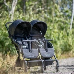 Beemoo Easy Fly Twin Søsken- & Tvillingvogn er en lett og fleksibel vogn i kompakt design, som gjør at den passer til mange forskjellige miljøer. Sittedelene har en justerbar rygg- og fotstøtte, fempunktsbelte og en medfølgende frontbøyle, slik at barna sitter trygt under hele trilleturen.De store, uttrekkbare kalesjene har et tittehull i nettingstoff, for god ventilasjon og godt innsyn. Rammen har en praktisk fotbremse, og legges raskt og enkelt sammen.- Lett design- Dobbel handlekurv- Fempunktsbelte- Avtakbar frontbøyle- Justerbar rygg- og fotstøtte- Maksvekt: 15 kg per sete.