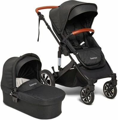 Beemoo Maxi er en smidig duovogn med mange praktiske egenskaper. Vognen har et justerbart håndtak, justerbar ryggstøtte og fotstøtte, og en avtakbar frontbøyle – alt for at du skal kunne tilpasse vognen etter dine behov. Den vendbare sittedelen har et praktisk fempunktsbelte, og en stor kalesje for solfylte dager. Liggedelen har en høy kalesje og medfølgende vindtrekk.