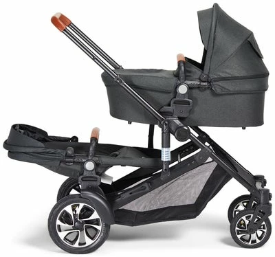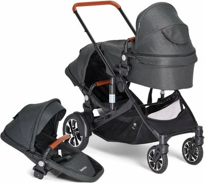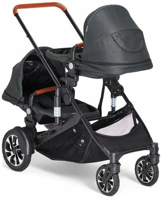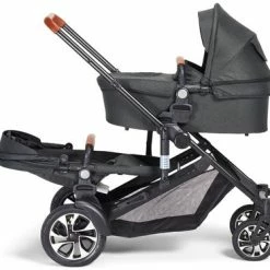 Beemoo Maxi 4 Twin er en praktisk og luksuriøs søskenvogn, som kan brukes helt fra fødselen. Du får med både et sete og en liggedel, slik at du kan tilpasse vognen til akkurat din families behov. Du kan bruke vognen med en av delene, eller feste begge hvis du har mer enn ett barn. Setet har en komfortabelt polstret sitteflate, utstyrt med en justerbar fempunktssele, en avtakbar frontbøyle og en stor kalesje med kikkhull. Setet er vendbart, det kan justeres til full hvilestilling. Liggedelen har en komfortabel madrass, vindbeskyttelse, bærehåndtak og en stor kalesje med kikkhull. Rammen er utstyrt med støtdempende fjæring og store lufthjul bak, for en jevn trilletur på alle slags underlag. Det er også en stor kurv under, for alt som skal med på trilleturen. – Maksimal vekt, sete: 15 kg. – Maksimal vekt, liggedel: 9 kg. – Lettvektdesign. – Støtdempende fjæring. – Justerbar ryggstøtte, i fire posisjoner. – Fempunktssele. – Justerbar fotstøtte. > – Kalesje med kikkhull. – Detaljer i imitert skinn. – Travelsystem mulig, med adaptere (selges separat).