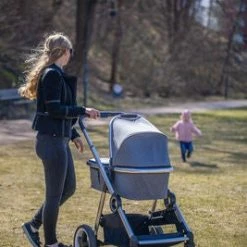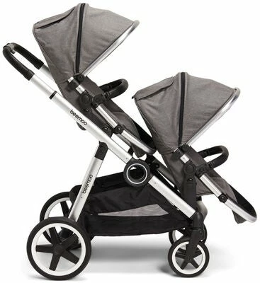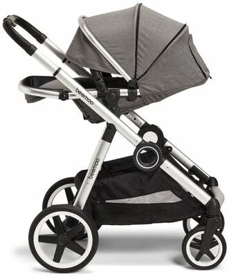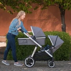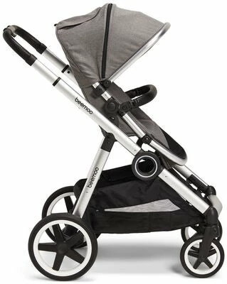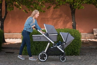 Beemoo Pro Multi er en fleksibel og praktisk sportsvogn i Beemoo Pro-serien. Vognen har en lett aluminiumsramme, som raskt legges sammen ved å løfte i midtpartiet. Tilpass vognen etter din egen familie, kjøp en ekstra liggedel eller et søskensete og forvandle vognen til en søskenvogn eller tvillingvogn – Beemoo Pro Multi vokser med barnefamilien!Den medfølgende sittedelen er vendbar, og har en justerbar rygg- og fotstøtte. Fotstøtten er forsterket med et smussavstøtende tøy. Bøylen prydes av syntetskinn, og kan svinges til begge sider eller tas helt av. Kalesjen kan forlenges, og har ventilasjonsvindu. Også rammen har behagelig lærimitasjon på det justerbare teleskophåndtaket, samt fotbremse og en stor varekurv på undersiden. Chassiset har fire punkteringsfrie EVA-hjul, hvorav de to fremre er låsbare. Lufthjul kan kjøpes til (selges separat).Beemoo Pro Multi er en allsidig vogn, som er klar for familieforøkelse.OBS! Kun ramme og sittedel. Søskensete, liggedel, adapter og babybilstol selges separat. Kompatibel med babybilstoler fra Maxi-Cosi, Axkid Modukid og BeSafe (adapter kreves).Når du bare har én sittedel, er setet 63 cm over bakken. Om du har to sittedeler, er det øverste setet 72 cm over bakken, og det nederste 39 cm over.Aldersanbefaling: 6 mnd.–4 år (fra nyfødt med liggedel).Maksimal belastning: 22 kg/sete + 3 kg i varekurvVi på Jollyroom vet hvor vanskelig det kan være å finne en barnevogn, som passer akkurat deg og ditt barns behov, og at det iblant blir veldig mye å tenke på med ulike modeller, merker og funksjoner. For å gjøre jobben lettere for deg, henviser vi til vår enkle barnevognguide: Jollyrooms Barnevognsguide