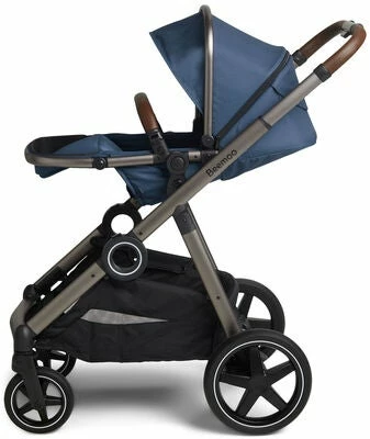Fleksibel Pro Multi sportsvogn fra Beemoo med lett chassis i aluminium. Den har en vendbar sittedel og et justerbart håndtak. Sportsvognen har justerbar ryggstøtte, et vendbart sete og punkteringssikre hjul i EVA. Kjøp til en ekstra liggedel eller et søskensete, og gjør om vognen til en duovogn, søskenvogn eller en tvillingvogn – en barnevogn som vokser med familien! – Rask å legge sammen ved å løfte midtpartiet. – Mykt imitert skinn på bøylen og teleskophåndtaket. – Kalesjen kan forlenges, og er utstyrt med et ventilasjonsvindu. – Fotbremse og stor varekurv (maksimal vekt 3 kg). – Bøylen kan svinges begge veier, eller helt tas av, for å gjøre det enklere å ta barnet inn og ut. – Kan brukes med lufthjul (selges separat). – Kompatibel med babybilstoler fra Maxi-Cosi, Axkid Modukid og BeSafe (adapter kreves). – Kan brukes fra fødselen med liggedelen (ikke inkludert). Nytt for denne modellen:– Nye kombinasjoner av chassisfarger og skinndetaljer. – Nye, myke stoff i tre farger. – Ny spenne som ikke skramler når den åpnes. – Svarte hjul med dekorativ hvit sirkel. – Mer komfortabel sele. – Lettere å justere lengden på selens skulderreimer. – Forbedret feste til kalesjen, for en mer elegant look. – Bredere kalesjevindu. – Mål oppslått: 101–109 x 60 x 92–101 cm. – Mål sammenslått (uten hjul): 55 x 93 x 27 cm. – Setedybde: 21,5 cm. – Fotstøtte: 20 cm. – Anbefalt alder: fra 6 måneder.Vi på Jollyroom vet hvor vanskelig det kan være å finne en barnevogn som passer akkurat deg og ditt barns behov, og at det iblant blir veldig mye å tenke på med ulike modeller, merker og funksjoner. For å gjøre jobben lettere for deg henviser vi til vår enkle barnevognguide: Jollyrooms Barnevognsguide