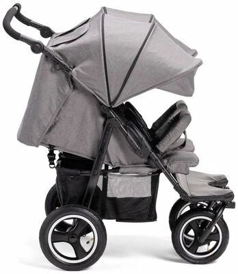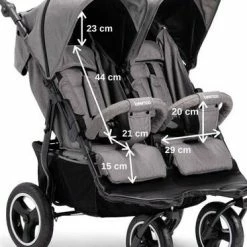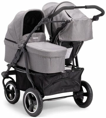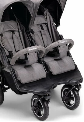 Beemoo Swing Søskenvogn er en hendig tvillingvogn som sørger for at trilleturen blir behagelig for både barn og forelder. Setene har trinnløse, individuelt justerbare ryggstøtter, med god hvilestilling. Vognen har store lufthjul foran og bak, og framhjulene er justerbare (med fikseringslås). Store kalesjer med trinnløs justering beskytter godt mot vær og vind. Når vognen skal transporteres eller lagres, slås den enkel sammen og sikres med transportlåsen. – Nytt for 2019-modellen er en oppdatert kalesje. – 5-punktssele med myke puter. – Transportlås.- Stor varekurv.- Sikkerhetsbøyler.- Fotbremse.- Justerbart håndtak (kneledd). – Justerbare kalesjer. – Justerbare seterygger.- Justerbar fotstøtte. Anbefalt alder: 6 mnd– 3 år (fra nyfødt med liggedel). Maksvekt: 22 kg per sete.Vi på Jollyroom vet hvor vanskelig det kan være å finne en barnevogn som passer akkurat deg og ditt barns behov, og at det iblant blir veldig mye å tenke på med ulike modeller, merker og funksjoner. For å gjøre jobben lettere for deg så henviser vi til vår enkle barnevognsguide: Jollyrooms Barnevognsguide