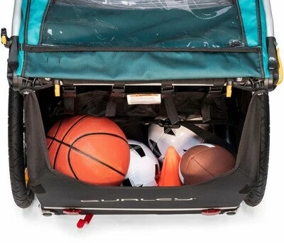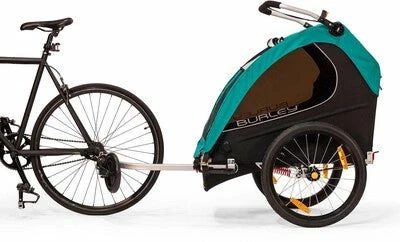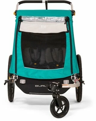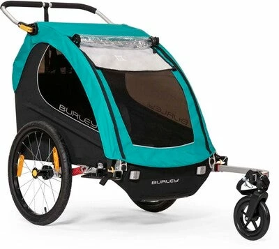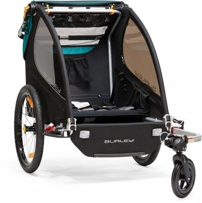 Behagelig, stabil Encore X sykkelvogn fra Burley med et vanntett trekk i polyester. Den har fargede UV-vinduer. Du kan raskt skifte mellom å sykle eller gå, med det medfølgende barnevognsfestet. – Maksimal vekt: 45.0 kg– aluminium, polyester