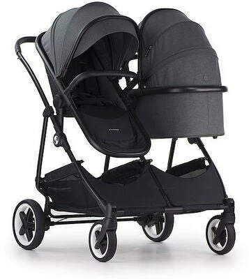Lettmanøvrert, sammenleggbar, svart Twin 360 duovogn fra Crescent med vendbare seter med en myk madrass med et mykt, pustende stoff. Den har lett chassis i aluminium og en justerbar ryggstøtte. Duovognen har en romslig handlekurv under setet og en forlengbar kalesje med ventilasjonsvinduer. – Maksimal vekt: 30.0 kg. – Anbefalt alder: fra nyfødt til 3 år.Vi på Jollyroom vet hvor vanskelig det kan være å finne en barnevogn som passer akkurat deg og ditt barns behov, og at det iblant blir veldig mye å tenke på med ulike modeller, merker og funksjoner. For å gjøre jobben lettere for deg henviser vi til vår enkle barnevognguide: Jollyrooms Barnevognsguide