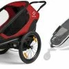 Double-locking system gjør at du enkelt og raskt kan gjøre om vognen fra barnevogn til sykkelvogn, og vice versa. Tydelige fargeindikatorer viser grønt når vognen er korrekt montert. Det gripevennlige skumhåndtaket kan justeres fritt i høyden, så det blir ergonomisk for forelderen som triller. Hjulet er både enkelt og praktisk å ta av med en trykknapp. Sykkelvognen er utstyrt med sol- og vindtrekk samt myggnett, som også gir god ventilasjon.