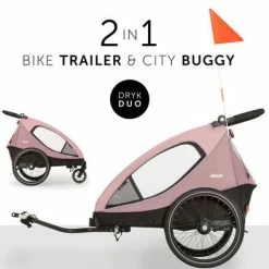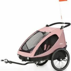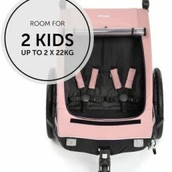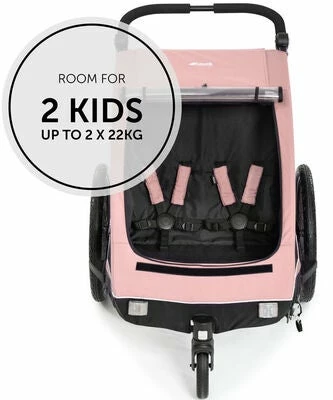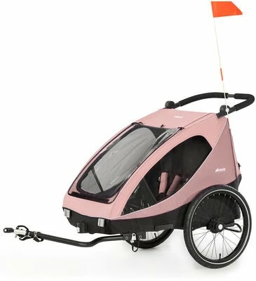 Praktisk Dryk Duo sykkelvogn fra Hauck til to barn med et justerbart håndtak med fem høydeinnstillinger. Den har store lufthjul som tilbyr deg og barnet ditt en støtfri og stabil trilletur og et smart, romslig lagringsrom til barnets diverse småsaker. Sykkelvognen har en stor kalesje for optimal beskyttelse mot regn og vind og et LED baklys for økt synlighet i mørket. – Den har plass til to barn, med en maksvekt på 22 kg per sete. – Maksimal vekt: 50.0 kg. – Anbefalt alder: fra 6 måneder til 4 år. – Inkluderer: oppbevaringsveske. – Batteri: 2 AAA (ikke inkludert).Vi på Jollyroom vet hvor vanskelig det kan være å finne en barnevogn som passer akkurat deg og ditt barns behov, og at det iblant blir veldig mye å tenke på med ulike modeller, merker og funksjoner. For å gjøre jobben lettere for deg henviser vi til vår enkle barnevognguide: Jollyrooms Barnevognsguide