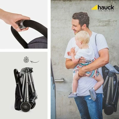 Hauck Swift Plus er den perfekte barnevognen for deg som beveger deg mye i bymiljø, og som elsker å reise! Den felles enkelt sammen, og opp igjen, med kn en hånd og kan bæres som en veske med hjelp av den smarte skulderremmen – supersmidig når dere må ta dere opp trapper eller skal hoppe på bussen! Når vognen er sammenslått er den dessuten veldig kompakt, noe som gjør den lett å oppbevare i bilen eller andre steder med begrenset plass. Vognen er laget i lettvektsaluminium, og har et fint og moderne design. Sportsvognen veier knappe 7 kg, noe som bidrar til fleksibilitet! Takket være det svingbare framhjulet og den gode støtdemperen blir ferden behagelig både for deg og barnet ditt. Når barnet ditt trenger å hvile en stund kan du enkelt felle ned ryggstøtten, og justere fotstøtten. Det skal være behagelig å være på eventyr! Hauck Swift er utrustet med et mykt og sikkert 5-punktsbelte som gjør at barnet ditt sitter sikkert hele tiden. Den store og justerbare kalesjen beskytter for vær og vind, og har et smart, lite tittehull som bidrar til god sirkulasjon og som lar deg ha konstant oversikt over barnet.