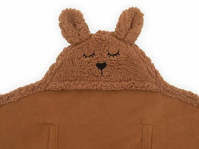 Bunny er en koselig og varmende omslagsvognpose fra Jollein. Vognposen har hull til både 3-punktsbelte og 5-punktsbelte, og kan brukes i barnevognen og babybilstolen. Det myke teddytøyet skaper trygghet og varme for den lille. Tåler maskinvask, 40 grader. Anbefalt alder: 0-9 mnd.