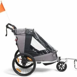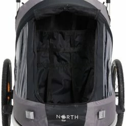 North 13.5 Rapider er en sykkelvogn for et eller to barn, med en robust aluminiumsramme og store lufthjul. Vognen monteres enkelt bak på sykkelen med den medfølgende armen, og kan også brukes som gåvogn med det medfølgende svingbare framhjulet.Den heldekkende sittedelen har god plass til to barn, og har fempunktssele, insektsnett og titteluke på sidene. For å være optimal på turen, er håndtaket justerbart for å passe alle førere, og vognen har en parkeringsbremse som enkelt settes på med en fot. Bak på ryggstøtten finnes oppbevaringslommer med god plass til alt som trengs til utflykten. For sykkelturen medfølger også et tydelig flagg som er festet bak. Et avtagbart regntrekk til vognens framside følger med. Maksvekt: 22 kg/sete.Anbefalt alder: ca 1-4 år (makslengde 105 cm).OBS! Feiltrykk i manualen kan forekomme: Om du frakter et barn kan hen ikke sitte midt i vognen, men på den siden som blir høyresiden når du står bak vognen. OBS! Setepute medfølger ikke. Kun én kobling medfølger. Om du vil bruke sykkelvogner fra North 13.5 til flere sykler trenger du å kjøpe til en ekstra kobling per sykkel. Selges separat.Matilda Blom gir sin feedback på sin blogg!(svensk).Vi på Jollyroom vet hvor vanskelig det kan være å finne en barnevogn som passer akkurat deg og ditt barns behov, og at det i blant blir veldig mye å tenke på med ulike modeller, merker og funksjoner. For å gjøre jobben lettere for deg så henviser vi til vår enkle barnevognsguide: Jollyrooms Barnevognsguide