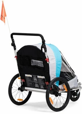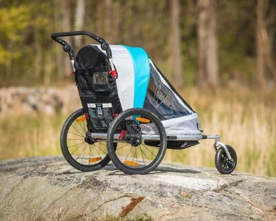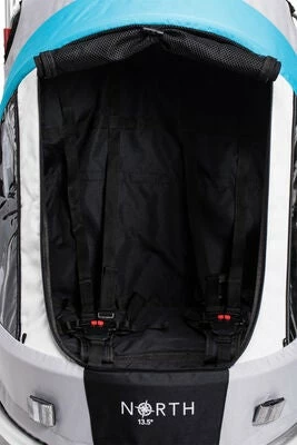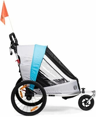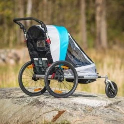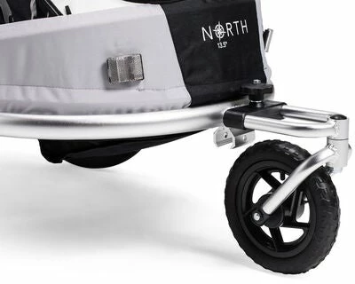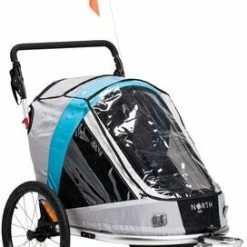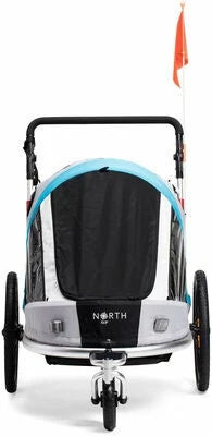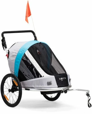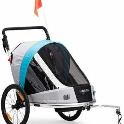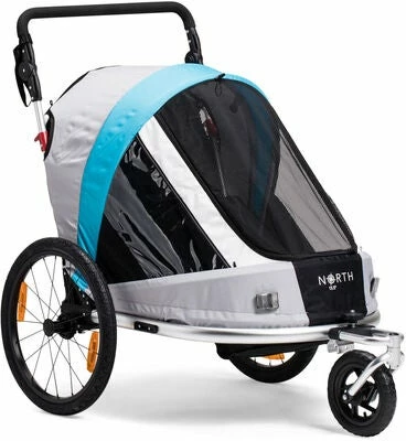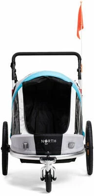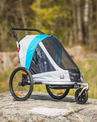 North 13.5 Rapider er en sykkelvogn for et eller to barn, med en robust aluminiumsramme og store lufthjul. Vognen monteres enkelt bak på sykkelen med den medfølgende armen, og kan også brukes som gåvogn med det medfølgende svingbare framhjulet.Den heldekkende sittedelen har god plass til to barn, og har fempunktssele, insektsnett og titteluke på sidene. For å være optimal på turen, er håndtaket justerbart for å passe alle førere, og vognen har en parkeringsbremse som enkelt settes på med en fot. Bak på ryggstøtten finnes oppbevaringslommer med god plass til alt som trengs til utflykten. For sykkelturen medfølger også et tydelig flagg som er festet bak. Et avtagbart regntrekk til vognens framside medfølger.Maksvekt: 22 kg/sete.Anbefalt alder: ca. 1–4 år (makslengde 105 cm).OBS! Feiltrykk i manualen kan forekomme: Om du frakter et barn kan hen ikke sitte midt i vognen, men på den siden som blir høyresiden når du står bak vognen.OBS! Feiltrykk i manualen: Pute medfølger ikke. Kun én kobling medfølger. Om du vil bruke sykkelvogner fra North 13.5 til flere sykler trenger du å kjøpe til en ekstra kobling per sykkel. Selges separat.Matilda Blom gir sin feedback på sin blogg!(svensk).Vi på Jollyroom vet hvor vanskelig det kan være å finne en barnevogn som passer akkurat deg og ditt barns behov, og at det i blant blir veldig mye å tenke på med ulike modeller, merker og funksjoner. For å gjøre jobben lettere for deg så henviser vi til vår enkle barnevognsguide: Jollyrooms Barnevognsguide