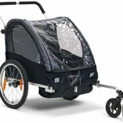 North 13.5 Roadster er en praktisk og enkel sykkelvogn. En multifunksjonsvogn som passer godt til den sporty familien. Barnevognen har plass til ett eller to barn og kan også brukes som turvogn uten sykkelen. Vognen leveres komplett med sykkelsett, inkludert et støttehjul.Sykkelvognen er utformet med en stabil aluminiumsramme og har lett vekt. De store 20-tommers hjulene gjør sykkelturen stabil og komfortabel. Vognen har reflekterende detaljer på alle sider, roterbart framhjul, fotbrems og et høyt flagg slik at dere er synlige i trafikken.Med Roadster kjører barna trygt og komfortabelt. Vognen er utstyrt med sikkerhetsseler med vatterte skulderbånd, og har godt med plass til bena. Sikkerhetsselene kan flyttes avhengig av om ett eller to barn skal kjøre i vognen, for å få jevn vekt/tyngdepunkt. Allværsbeskyttelsen er oppdelt i to deler, nederste laget er et nett for god ventilasjon og det ytterste et regntrekk. Vinduer på begge sidene for god utsikt. Vognen er også utstyrt med fotbremse og skifunksjon. Maksimal vekt per sete er 22 kg.Unbrakonøkkel og skiftenøkkel trengs for å montere vognen, inngår ikke!Anbefalt alder: fra 1–4 år.OBS! Spaserhjul medfølger ikke, selges separat!