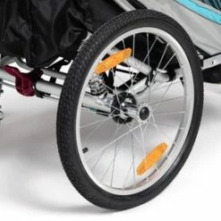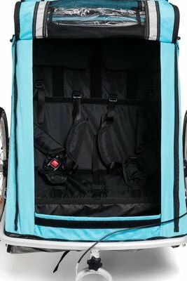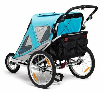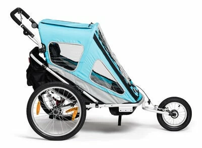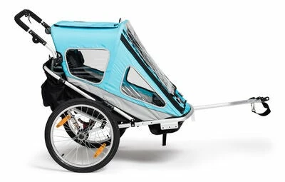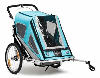 North 13.5 Speeder er en praktisk og enkel sykkeltilhenger, en multifunksjonsvogn for den sporty familien. Barnevognen kan ta både en eller to barn, og kan til og med brukes som joggevogn når dere ikke skal sykle. Søskenvognen leveres komplett med både sykkelsett og joggesett. Sykkelvognen er utformet med en aluminiumramme, og er lett i vekt. De store 20 tommers lufthjulene i kombinasjon med fjæringen gjør sykkelferden stabil og komfortabel. Vognen har reflekterende detaljer på alle sider og et høyt flagg slik at dere synes i trafikken.Med Sykkelvognen Speeder sitter barnet trygt og komfortabelt. Utstyrt med sikkerhetssele med vattert skulderbånd, hodeputer og god benplass. Sikkerhetsselene kan flyttes avhengig om det er ett eller to barn som skal sitte i vognen, slik at det blir en jevnere vekt/tyngdepunkt. Håndbremse plassert på midten av håndtaket, og en fotbrems for ekstra sikkerhet. Speeder har en stor oppbevaringslomme på baksiden for å få plass til alle deres nødvendigheter og har et justerbart håndtak. Allværsbeskyttelsen er delt i to, der det underste laget er et nett for god ventilasjon og det ytterste et regntrekk. Vindu på sidene og titteluke i taket. Makslengde for barna er 116 cm.Maksvekt: 22 kg/sete.Anbefalt alder: 1–6 år.Unbrakonøkkel og skiftenøkkel er nødvendig for å montere vognen og inngår ikke. Obs! Det er en feil i manualen til dette produktet. Skjerm og sittepute inngår ikke. Det kan også være oppgitt feil maksvekt.
