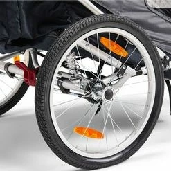 North 13.5 Sykkelvogn Speeder, en praktisk og enkel sykkelvogn. Dette er en multifunksjonell vogn, perfekt for den sportslige familien. Vognen har plass til ett eller to barn, den kan også brukes som en joggevogn eller ski-vogn når dere ikke skal sykle. Søskenvognen leveres komplett, med både sykkel, jogge- og skisett. Sykkelvognen er designet med en ramme i aluminium og er lett i vekt. De store 20-tommers lufthjulene, i kombinasjon med fjæringen, gjør sykkelturen enkel og behagelig. Vognen har refleksdetaljer på alle sider, samt et høyt flagg som gjør at dere er godt synlig i trafikken. Med Speeder sykkelvogn vil barna dine reise trygt og komfortabelt. Utstyrt med sikkerhetssele med polstrede skulderstropper, hodeputer og god benplass. Sikkerhetsbeltene kan flyttes, avhengig av om ett eller to barn skal sitte i vognen, for å få en god balanse/tyngdepunkt. Vognen har også en håndbrems plassert midt på håndtaket, i tillegg til en fotbrems, for ekstra sikkerhet. Speeder har et stort oppbevaringsrom på baksiden, slik at dere kan få med dere det viktigste på turen. Den har også et justerbart håndtak. Allværsbeskyttelsen er delt inn i to trinn. Det nederste laget er et nett for god ventilasjon, det ytterste er et regntrekk. Med vinduer på sidene og kikkhull i taket. Maksimal lengde for barn er 116 cm. Med det praktiske ski- og vandresettet kan dere ta med dere Speeder ut i naturen. Metallstengene er justerbare i to stillinger, det myke beltet har en praktisk drikkeholder foran. Bytt ut vognens bakhjul med ski og gi dere ut i sporet! – Passer for barn fra 1-4 år. – Sykkelsett, skisett og joggesett er inkludert. – 20 tommers lufthjul bak. – Slått sammen: H102 x L84 x D155 cm. – Brems på håndtaket. – Oppbevaringsrom på baksiden. Unbrakonøkkel og skiftenøkkel er nødvendig for å montere vognen, dette er ikke inkludert. Vær oppmerksom på at det kan være feiltrykk i manualen. Sprutbeskyttelse og pute er ikke inkludert.