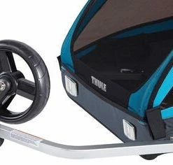 Thule Coaster XT er en sykkelvogn med plass til to barn. Vognen kan også brukes som vanig barnevogn – en perfekt vogn for den aktive familien, med andre ord!Coaster XT-sykkelvognen gjøres raskt og enkelt om fra sykkelvogn til vanlig barnevogn, og med Thules exHitch-system fester du sykkelfestet på sykkelrammen. Håndtaket justere i høyden ved at du snur på det. Sykkelsett og barnevogn-sett inngår. Vognen kan brukes med både ett og to barn.Type:Sykkelvogn.Egenvekt:12 kg.Mål sammenslått (hjul av): -Mål sammenslått:H28 x B77 x L94 cm.Mål oppslått: L137 x B77 x H103 cm (med håndtak).Sits och rygg: – Anbefalt alder:ca 0,5–3 år (Fra nyfødt med Thules Infant Sling).Maks belastning:Totalt 22 kg i setene + 23 kg i oppbevaring.Hjultype:Luft bak, plast fram.Framhjul:Roterbart.Antall hjul:2/3.Justerbart håndtak:Ja.Vendbart sete:Nej.Justerbart sete:Nej.Inkludert tilbehør:Sykkelsett, barnevogn-sett.Annet passende tilbehør:Flaskeholder, fôr, lås m.m.Travelsystem mulig:Nei.Garantier:1 år.Avtagbart trekk: – Vaskbart trekk:Tørk av med fuktig klut.