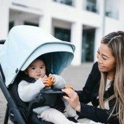 Thule Shine-barnevognen lar foreldre ta fatt på bylivet med barnet sitt fra dag én. Det kompakte designet lar foreldre manøvrere jevnt i alle byrom, enten det er på vei til en bypark eller de styrer gjennom en overfylt T-baneplattform. Barnevognen gir maksimal komfort og bekvemmelighet for foreldre, og kan skyves og pakkes sammen med bare én hånd. En perfekt barnevogn som vokser i takt med barnet, og en trofast følgesvenn gjennom de første årene.