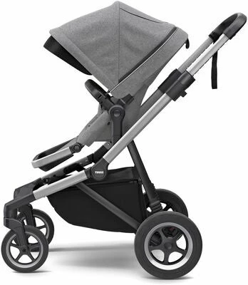 Thule Sleek er en fleksibel barnevogn som enkelt kan tilpasses familiens behov. Ved å kjøpe en ekstra sittedel eller liggedel, kan vognen vokse i takt med familien. Vognens nette design, gjør den perfekt å bruke i bymiljøer. Den romslige sittedelen har en generøs sittehøyde og justerbar fotstøtte, og kan justeres i tre steg, så barnet ditt sitter komfortabelt også når hen sover. Den store kalesjen har en ventil i nettingtøy, tittehul, solskjerm og UV-faktor 50+. Setet er også utstyrt med en justerbar fempunktssele, og en frontbøyle som kan svinges til siden, så det blir lett å ta barnet ut av/sette det i vognen. Liggedelen er romslig og god, og har en ventil i nettingtøy, en ventilerende madrass, og en stor kalesje med UV-faktor 50+. Vognen har skumfylte, punkteringsfri bakhjul, som sammen med vognens fjæring, gjør trilleturen myk og behagelig, selv i røffere terreng. – Justerbart håndtak.- Roterbare framhjul. – Venbart sete.- Lett å klappe sammen, med autosperre.- Krok til stelleveske.- Stor varekurv med glidelås.Vi på Jollyroom vet hvor vanskelig det kan være å finne en barnevogn som passer akkurat deg og ditt barns behov, og at det iblant blir veldig mye å tenke på med ulike modeller, merker og funksjoner. For å gjøre jobben lettere for deg så henviser vi til vår enkle barnevognsguide: Jollyrooms Barnevognsguide