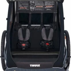 Thule Coaster XT er en sykkelvogn for opptil to barn, som er tilpasset for både sykling og herlige trilleturer – perfekt til familien med en aktiv livsstil!Coaster XT forvandles raskt og enkelt fra sykkelvogn til trillevogn. Takket være Thules exHitch-system, fester du enkelt sykkelfestet til sykkelen din. Håndtaket kan enkelt justeres i høyden ved å vende på det. Både sykkelsett og tursett medfølger. Vognen kan brukes til ett eller to barn. Bakhjulene er luftfylte, og framhjulet er i plast. Aldersanbefaling: ca. 0,5–3 år (Fra nyfødt med Thules Infant Sling).Maksimal belastning: Totalt 22 kg i setene + 23 kg i oppbevaring.