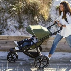 Thule Urban Glide 2 er en komfortabel sportsvogn for alle typer terreng, med en lett og smidig design, som gjør den like godt egnet for bymiljø som for skogen. Med store bakhjul, roterbart framhjul og en lav egenvekt, er Thule Urban Glide 2 lett å manøvrere, og vridebremsen på det justerbare håndtaket, gjør at du alltid har full kontroll. Vognen klappes enkelt sammen med én hånd, og blir da lett å lagre eller ta med seg på reisen. Kalesjen er justerbar og har luftehull på siden, samt en titteluke som lukkes med magnet. Setet har en vattert fempunkts sikkerhetssele og innebygd ventilasjon. Vi på Jollyroom vet hvor vanskelig det kan være å finne en barnevogn, som passer akkurat deg og ditt barns behov, og at det iblant blir veldig mye å tenke på med ulike modeller, merker og funksjoner. For å gjøre jobben lettere for deg, henviser vi til vår enkle barnevognsguide: Jollyrooms Barnevognsguide
