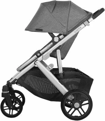 UPPAbaby VISTA V2 er duovognen som vokser med barnefamilien! Vognen er spesielt tilpasset for å raskt og enkelt kunne forvandles fra singelvogn til søskenvogn. Med duovognen VISTA, kan du transportere opptil tre barn samtidig!VISTA V2 har en innovativ og stilren design, samt nye funksjoner på den oppdaterte versjonen. Sittedelen er vendbar, har en høyere ryggstøtte og en dypere fotstøtte, framhjulslås med visuelle indikatorer og en forbedret og mykere fjæring på samtlige hjul. Kalesjen kan forlenges, og er utstyrt med nettingpaneler for bedre ventilasjon og UV-beskyttelsesfaktor på 50+. Liggedelen (medfølger) har en perforert madrass, med ekstra god pustekapasitet. Takket være dybden og ventilasjonsfunksjonene, er liggedelen også godkjent som seng. – Forlengningsbar kalesje med UV-beskyttelsesfaktor 50+ og nettingpaneler for ventilasjon- Forbedret fjæring på alle hjul, samt mykere dekk- Vendbar sittedel med høyere ryggstøtte og dypere fotstøtte- Fempunktssele som ikke trenger å tres på nytt- Framhjulslås med visuelle indikatorer- Ekstra stor, lett tilgjengelig varekurv med egen lomme til regntrekk- Kompatibel med babybilstolen MESA i-SIZE – ingen adapter nødvendig- Oppbevaringsveske, myggnett og regntrekk til liggedel medfølgerAnbefalt alder: Liggedel: Egnet fra fødselen og opptil en vekt på 9 kg, eller til barnet selv kan reise seg opp på hender og knær, avhengig av hva som inntreffer først. Sittedel: 6 måneder til 22 kg. Vi på Jollyroom vet hvor vanskelig det kan være å finne en barnevogn, som passer akkurat deg og ditt barns behov, og at det iblant blir veldig mye å tenke på med ulike modeller, merker og funksjoner. For å gjøre jobben lettere for deg, henviser vi til vår enkle barnevognguide: Jollyrooms Barnevognsguide