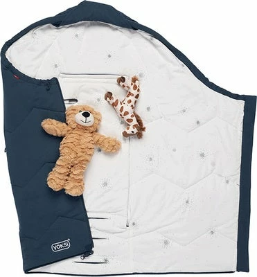 Koselig Sky Light vognpose fra Voksi med en smart, åpningsbar design. Den har et sklisikkert materiale bakpå og en smidig forlengelse nederst for ekstra fleksibilitet. Vognposen er universell og passer de fleste barnevognene på markedet. – Produktet er Oeko-Tex® 100-sertifisert, noe som sikrer at det er fritt for skadelige kjemikalier– Anbefalt alder: fra nyfødt til 3 år– Ytterstoff: 60 % bomull, 40 % polyester– Indre stoff: 100 % bomull– Fôr: 100 % resirkulert polyester
